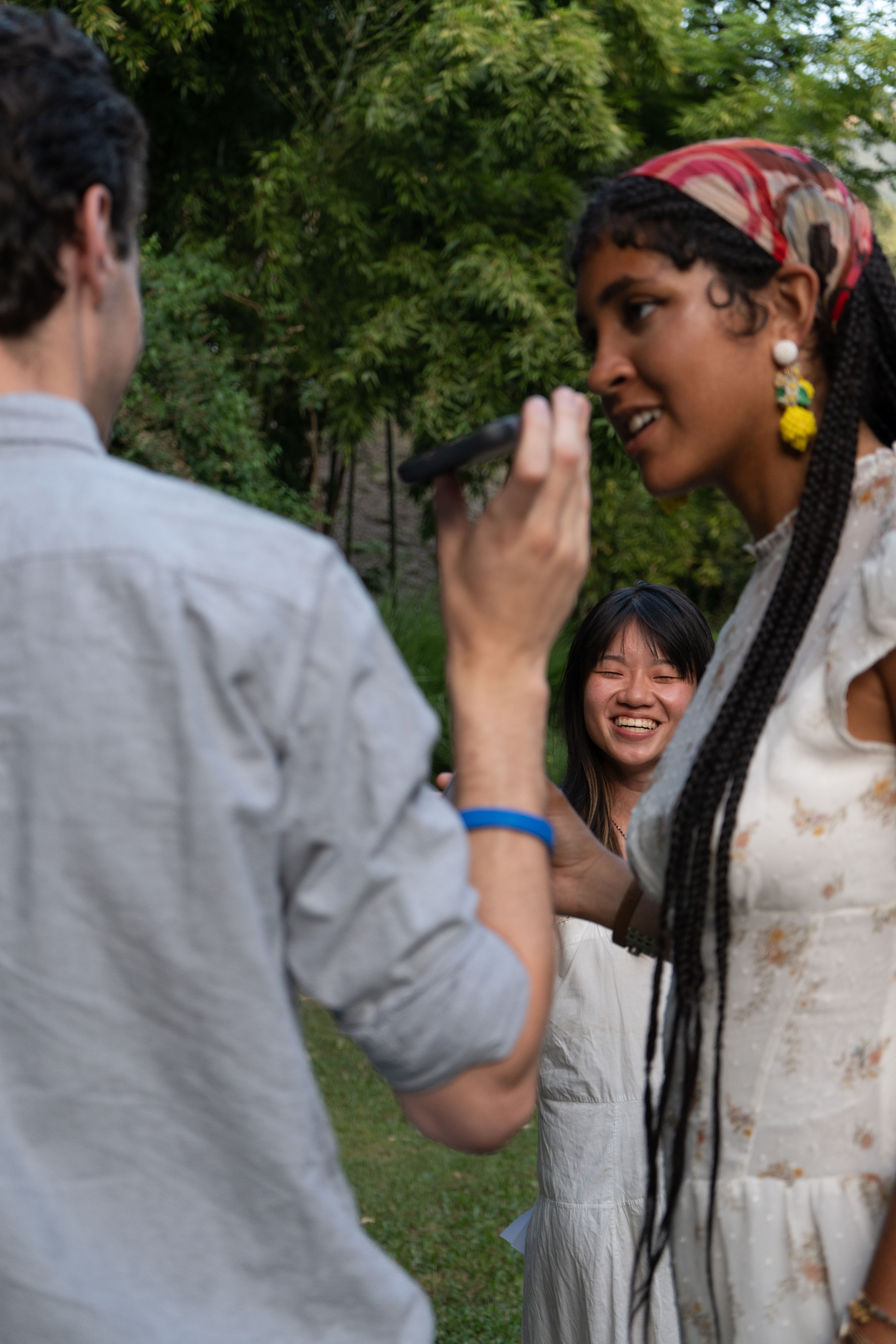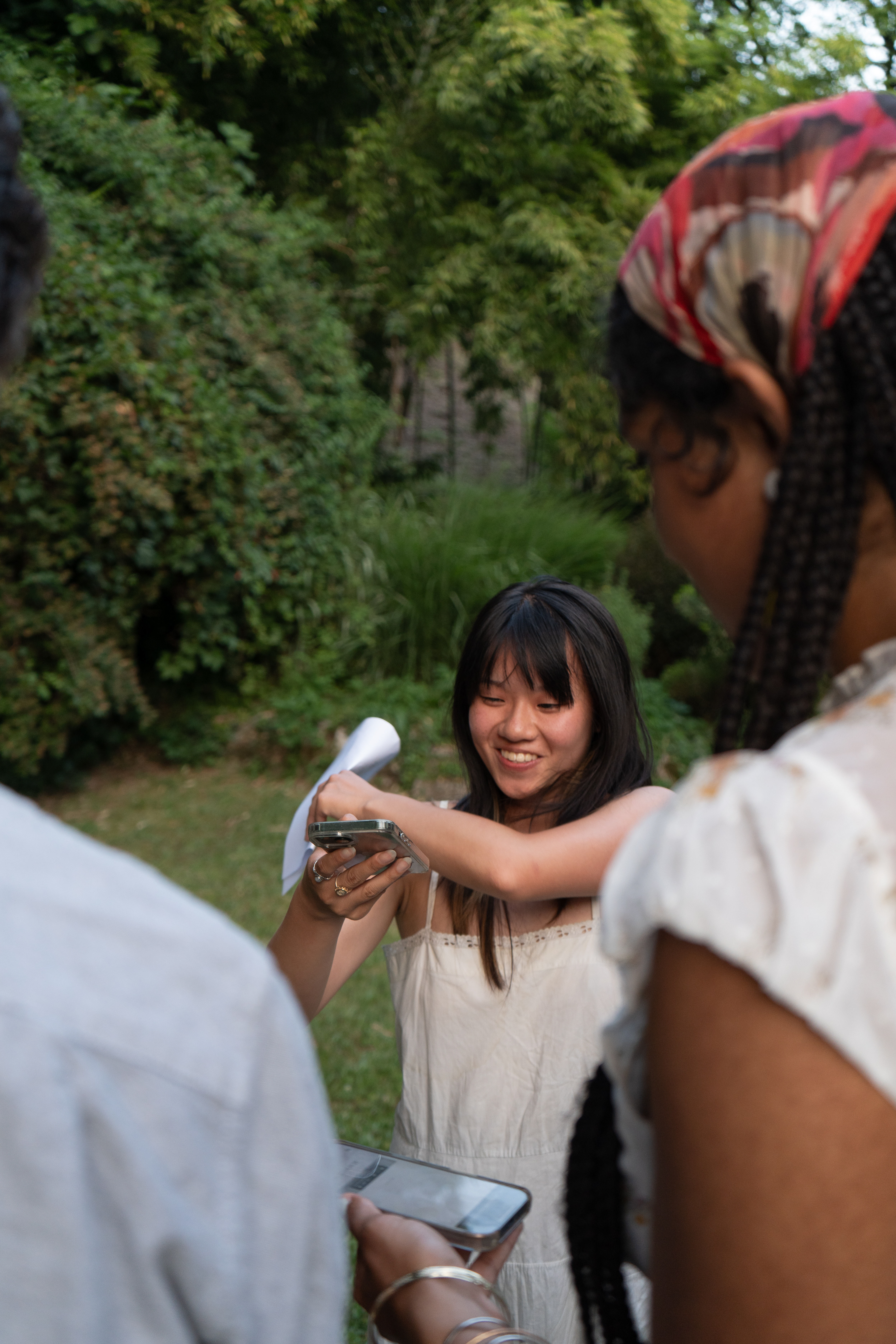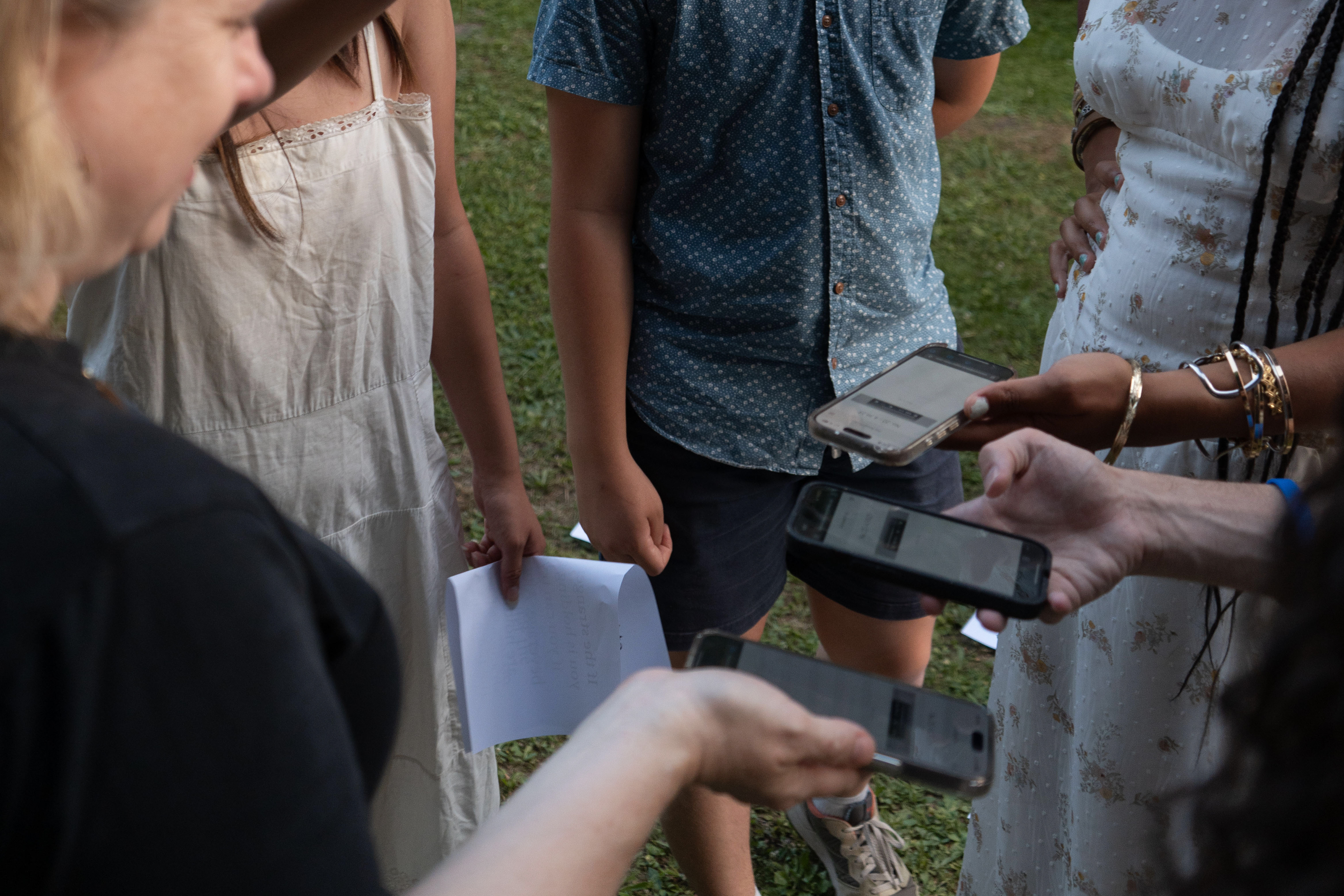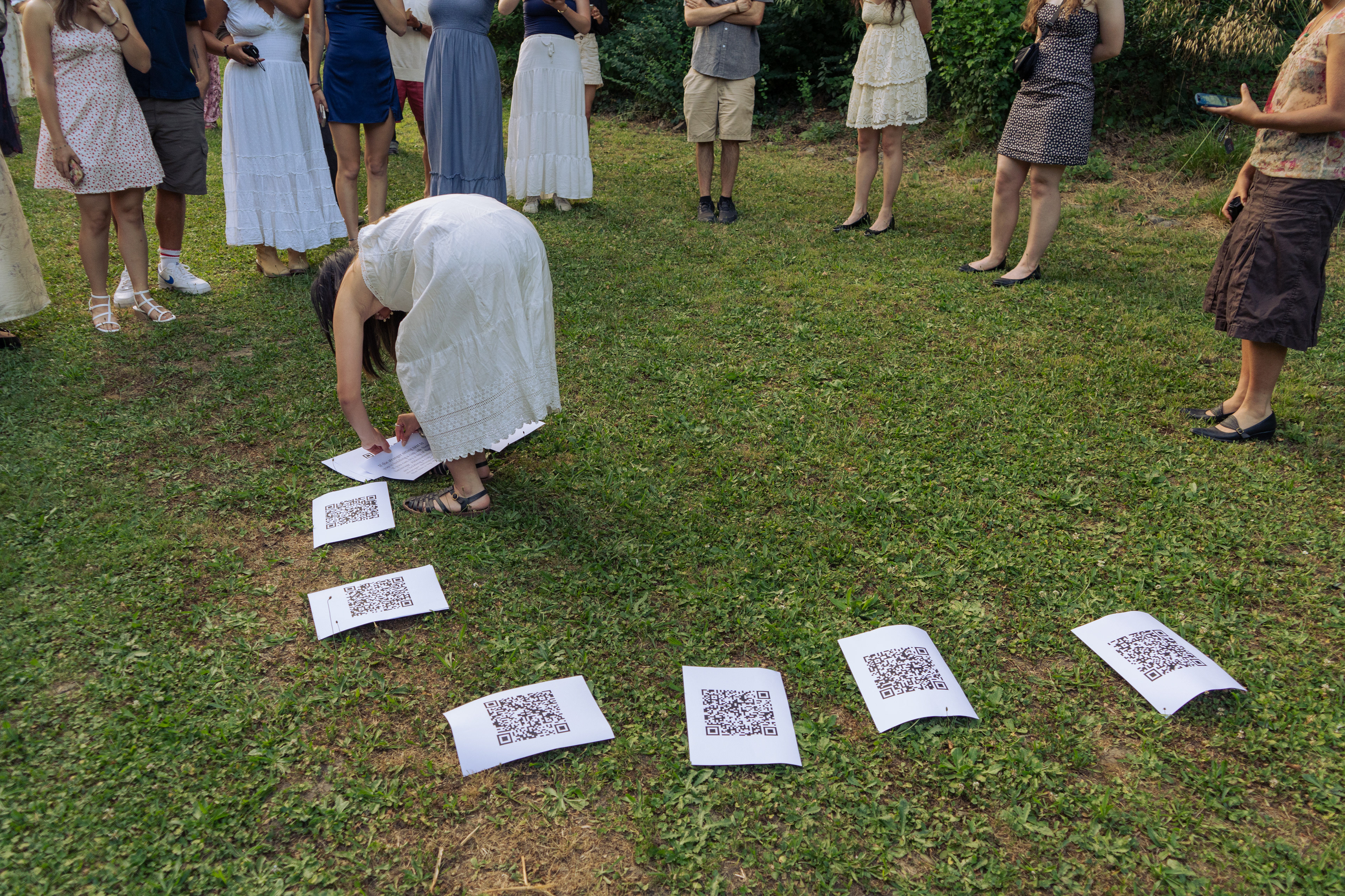 1. Each participant will be given a paper with a QR code directing them to a unique audio clip. Participants scan the QR code with their mobile devices, which will serve as their speakers.