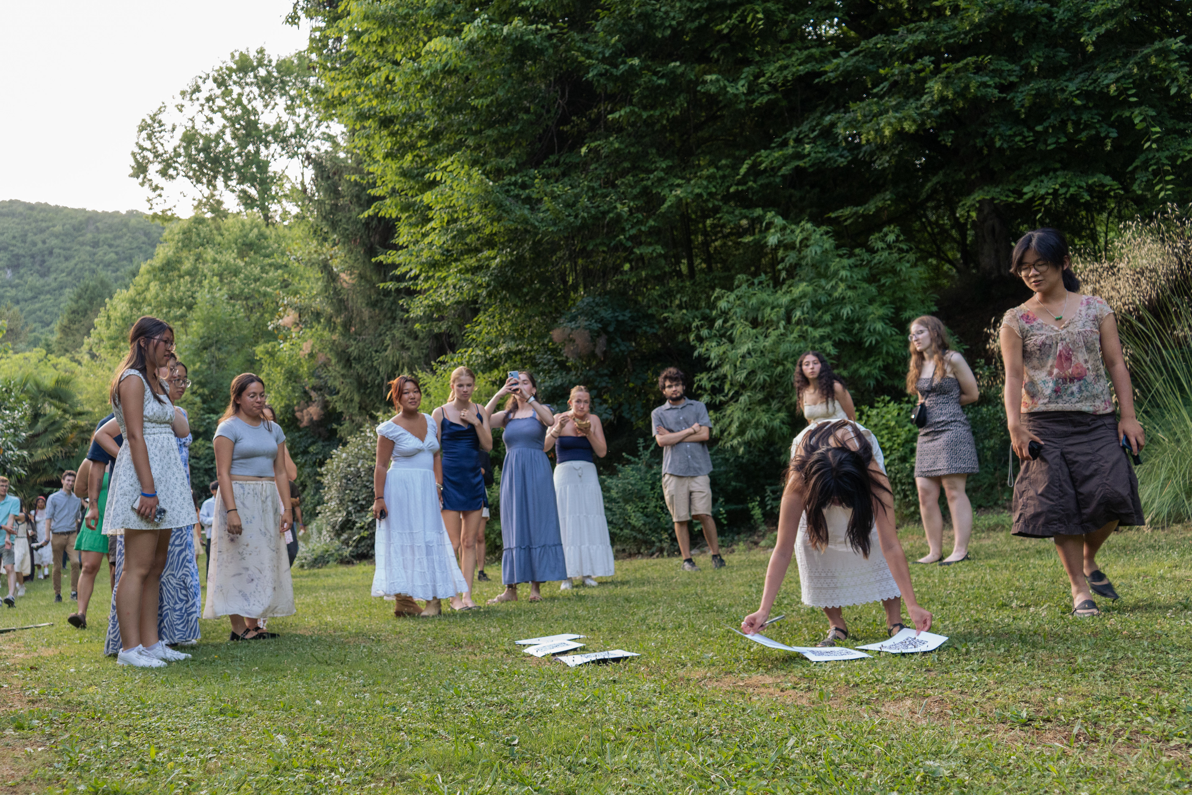 Throughout the duration of the performance, participants should walk towards other participants who are playing or who have played the same song.